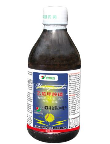 30%乙酰甲胺磷EC:防治菜青蟲、小菜蛾,每畝用80~120ml,兌水40~75kg噴霧;防治蔬菜蚜蟲,每畝用50~75ml(有效成分15~22.5g),兌水50~75kg噴霧;防治稻卷葉螟,每畝用125~225ml,兌水60~75kg噴霧;防治棉蚜、小造橋蟲,每畝用100~150ml,兌水75~100kg常量噴霧;防治棉鈴蟲、紅鈴蟲,每畝用150~200ml,兌水75~100kg常量噴霧;防治桃小食心蟲、梨小食心蟲,用水稀釋成500~750倍(有效濃度600~400mg/L)均勻噴霧;防治柑桔介殼蟲,用水稀釋成300~600倍液(有效濃度1000~500mg/L)均勻噴霧;防治玉米小麥粘蟲,每畝用120~240ml,兌水75~100kg噴霧;防治煙青蟲,每畝用100~200ml,兌水50~100kg噴霧。用于棉鈴蟲、蚜蟲卵孵盛期至低齡幼蟲鉆蛀期間均勻噴霧。防玉米螟在卵孵化盛期均勻噴霧。防玉米粘蟲在卵孵盛期或幼蟲3齡前均勻噴霧。在其它作物上使用,在蟲害發(fā)生初期開始施藥。本品不可過熱,或者與堿性物質(zhì)混用,以免降低防效;施藥時勿接觸皮膚,接觸后立即沖洗;施藥三天內(nèi)禁止人畜下田,五天內(nèi)不要將田水放入池塘、河道,避免魚類中毒。安全間隔期為14天。