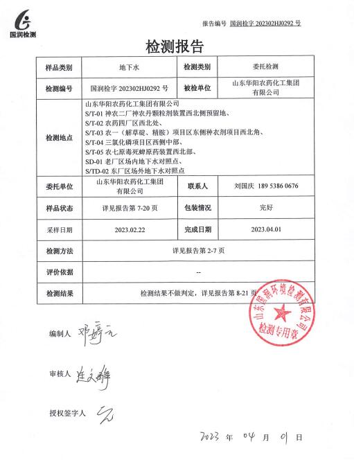 附件:山東華陽農(nóng)藥化工集團(tuán)有限公司地下水檢測(cè)報(bào)告.pdf